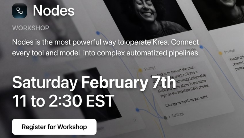 Nodes is the most powerful way to operate Krea. Connect every tool and model into complex automatized pipelines