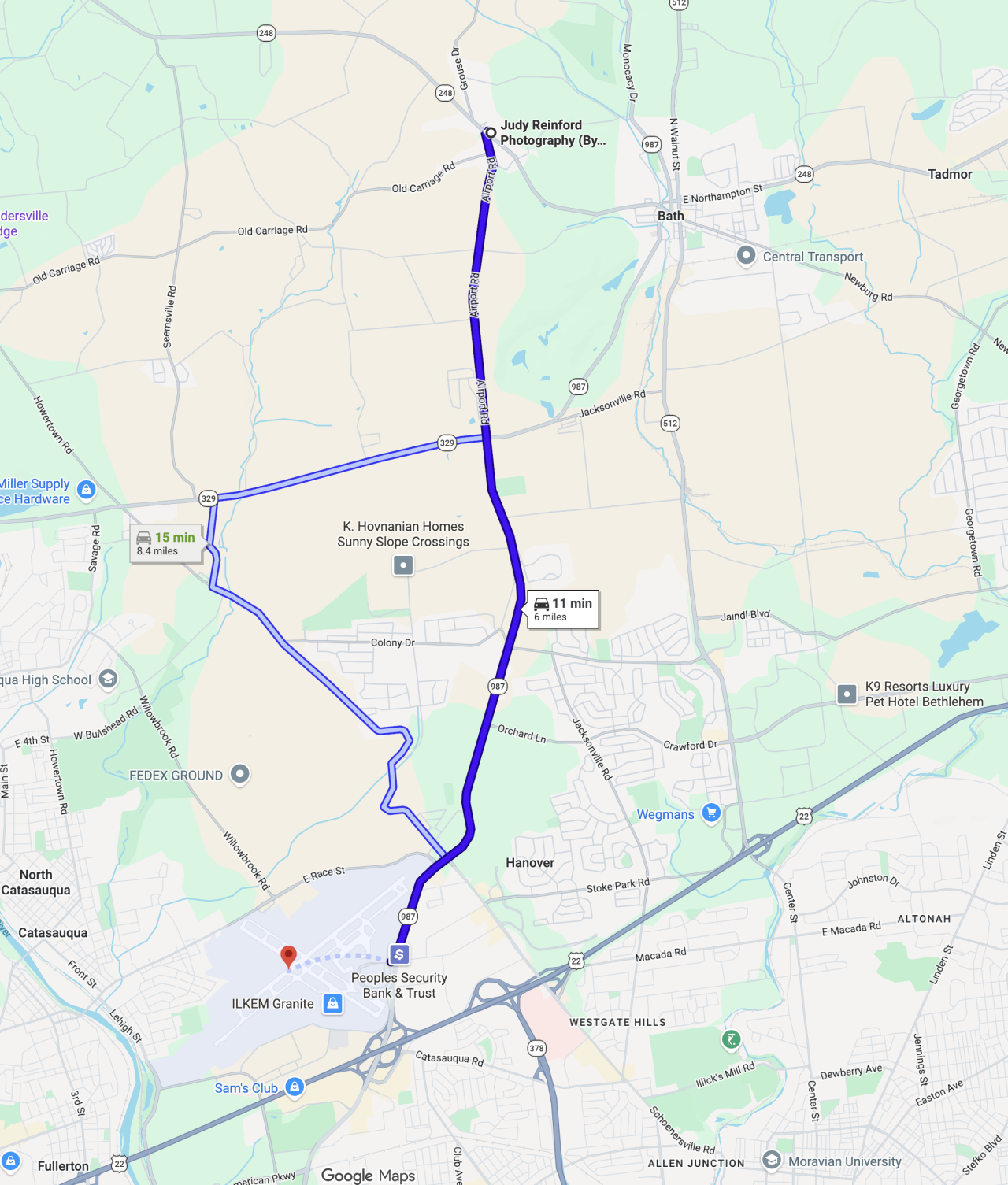 ABE international airport is 15 minutes away or PHL (Philadelphia) is 1.5 hours away.